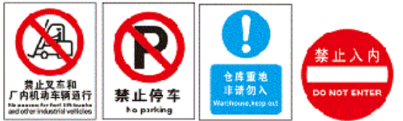 紅色鮮艷,警示作用較強,以上第一個圖標中的紅色提示均表示此處禁止叉車和廠內機動車輛通行;